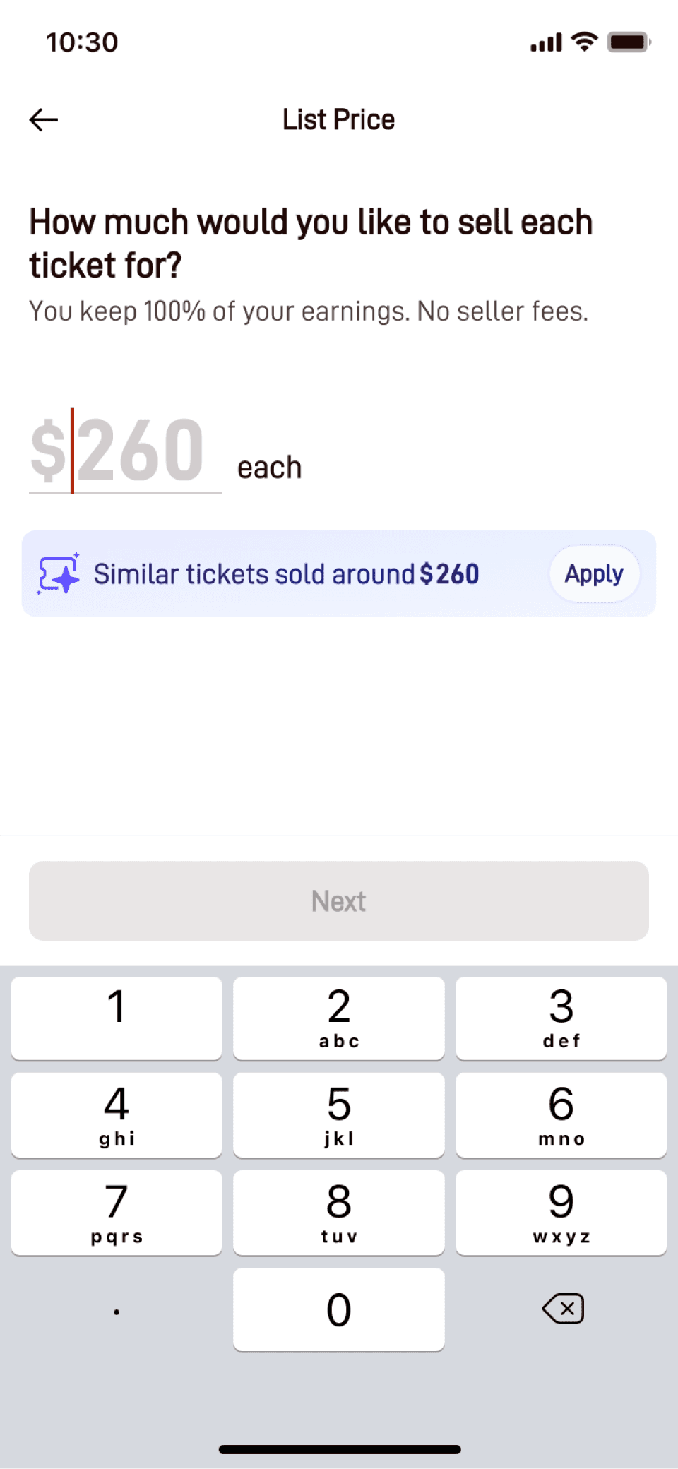 Our users are time-pressed — most tickets are listed within three days of the show, with a large portion listed on the day of the show itself. Any pricing solution needed to be fast and effortless.