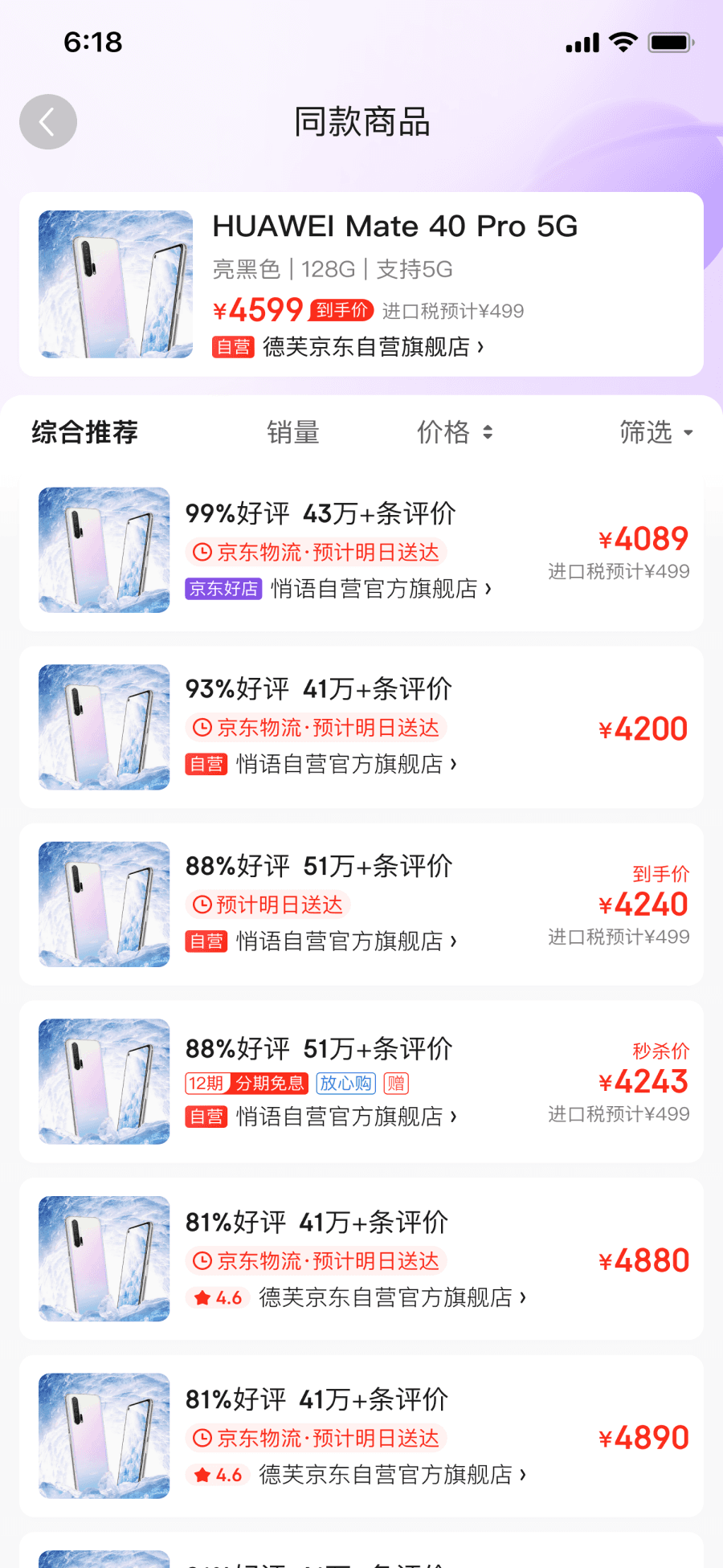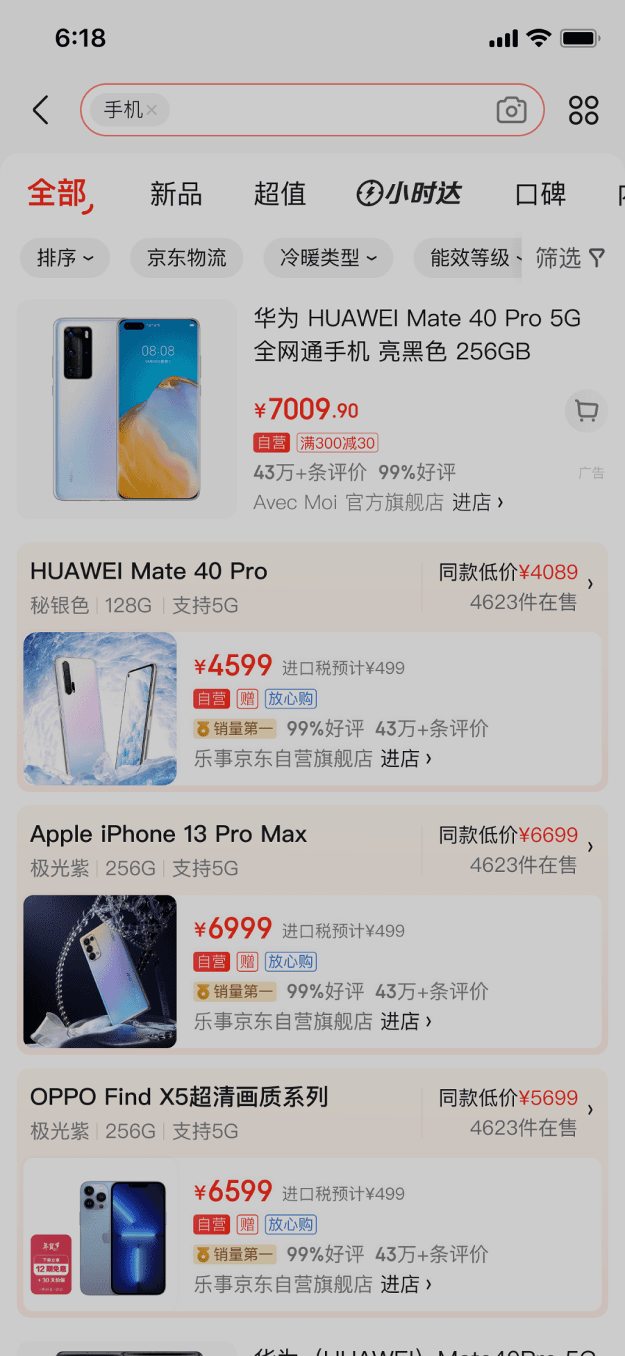Highlight JD.com’s three differentiators—lowest price (what draws users to click), fastest delivery, best warranty (jd’s brand image)—through visual cues and added ranking options.