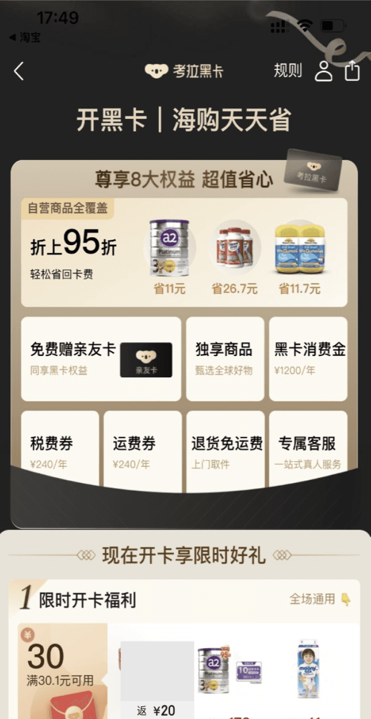 Koala Black Card Sale Page