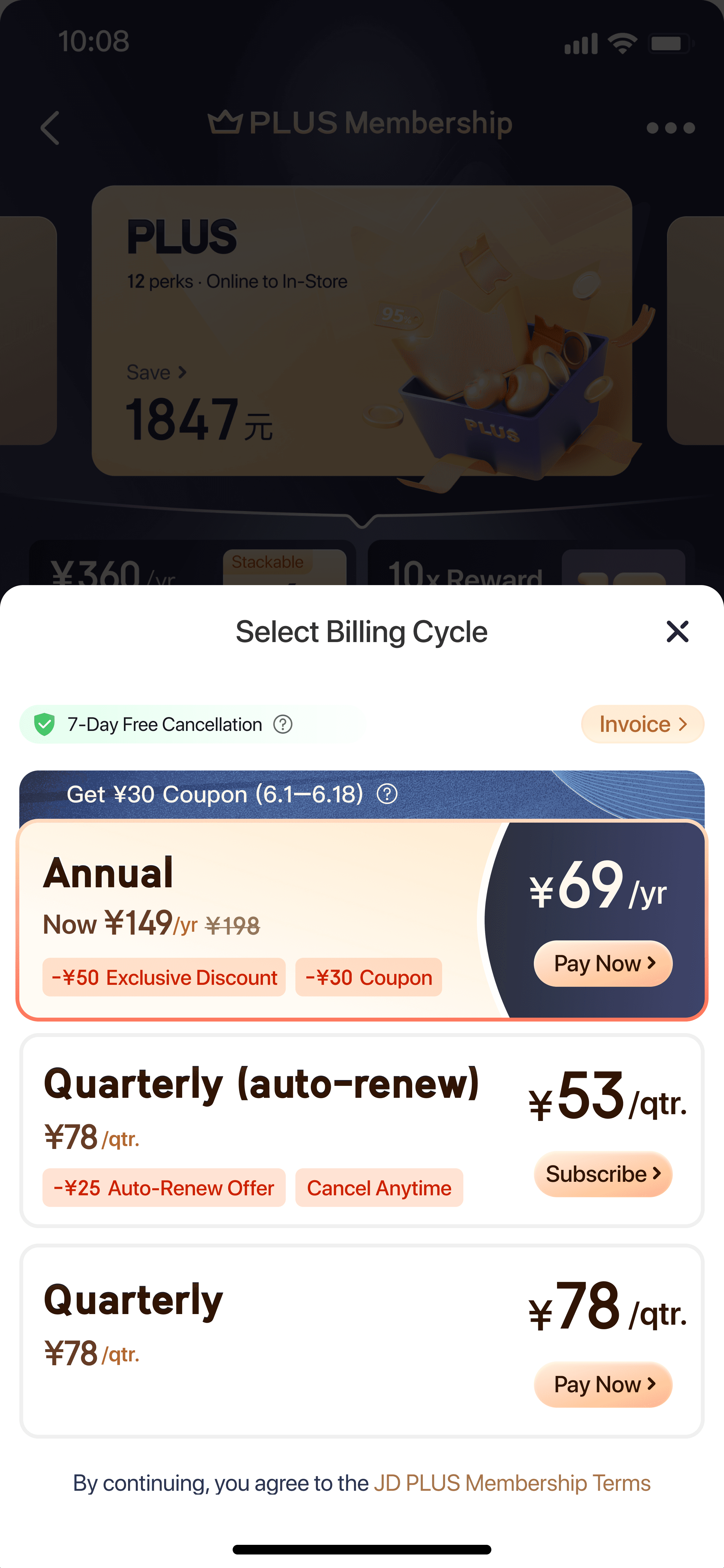 JD.com Plus Membership Sale Page