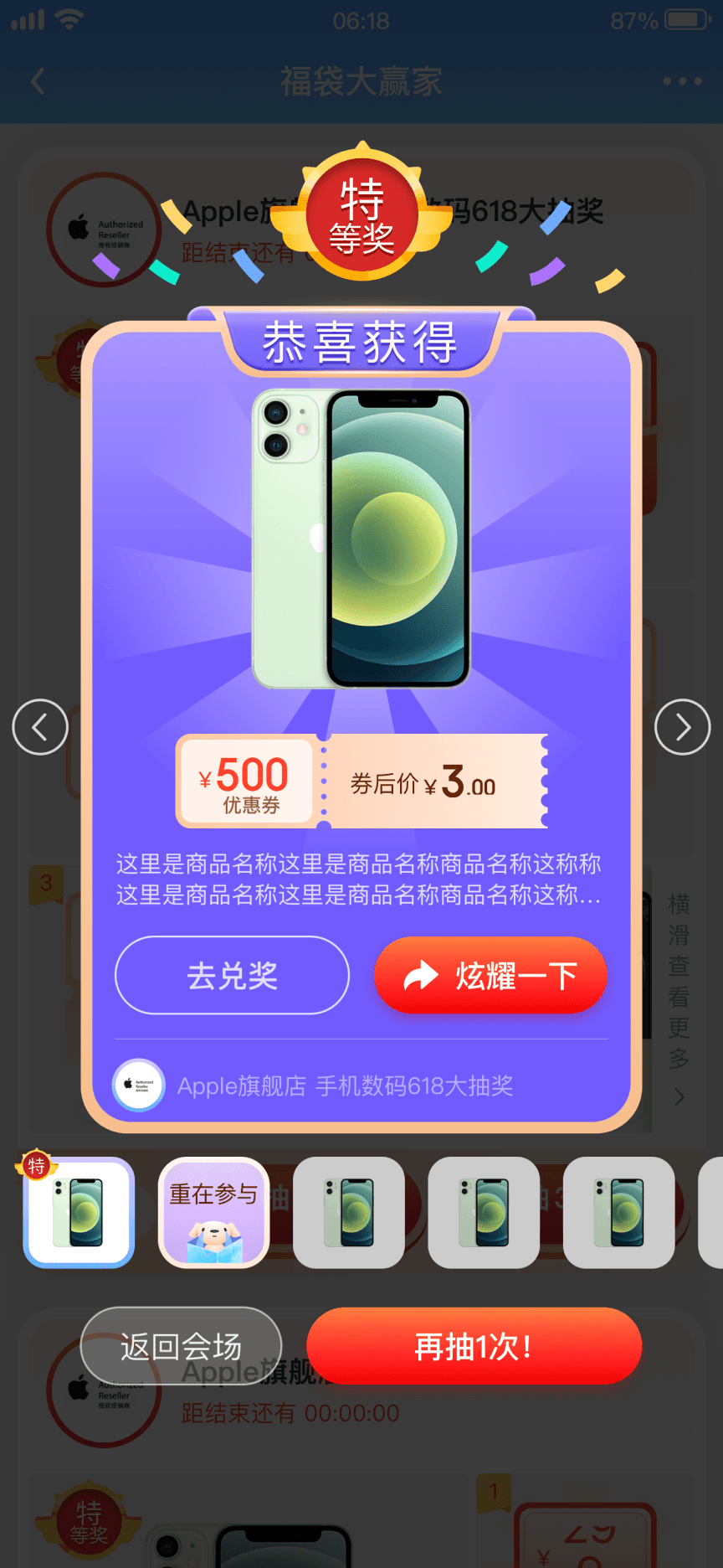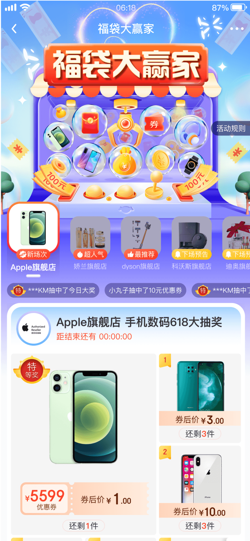 The Lucky Bag Prize Draw is an in-app raffle game designed to expand product offerings and enhance user conversion and retention within the JD Speed Version App (a performance-optimized, lighter version of JD.com tailored for users with older smartphones). Players can purchase tickets for a “Coupon Mystery Bag”, with the opportunity to draw coupons worth at least the ticket price, and the added excitement of winning major prizes, such as an iPhone for under $1.