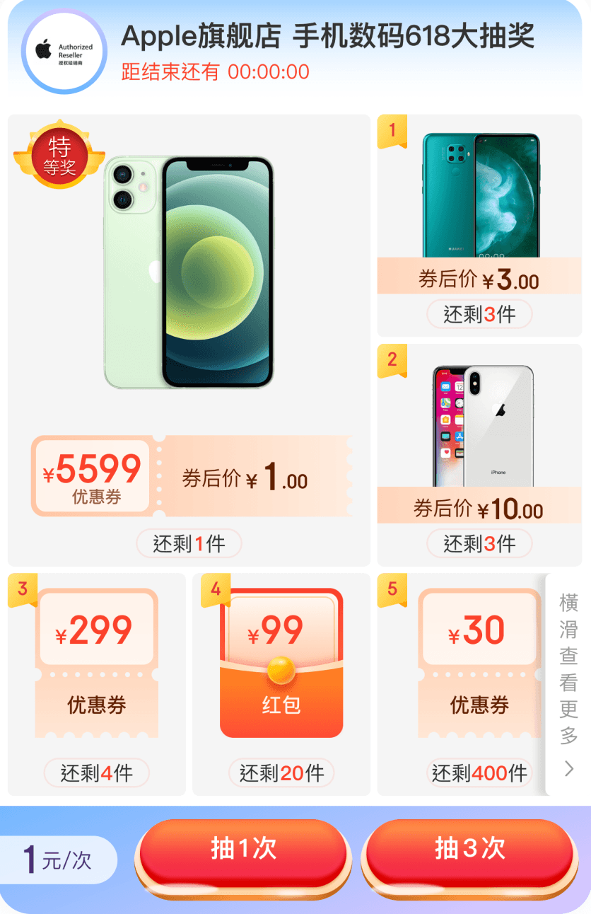 Tiered Prizes: Prizes vary from discount coupons worth $1 to $10, up to high-value items worth thousands of dollars.