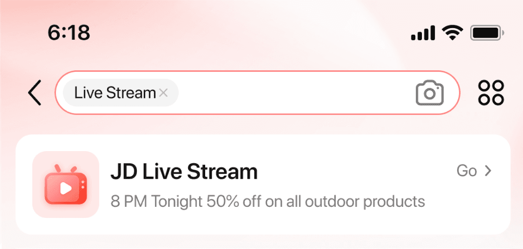 During major promotional events (6.18, 11.11, Black Friday), users search for event pages and features—often influenced by offline ads or livestreams.