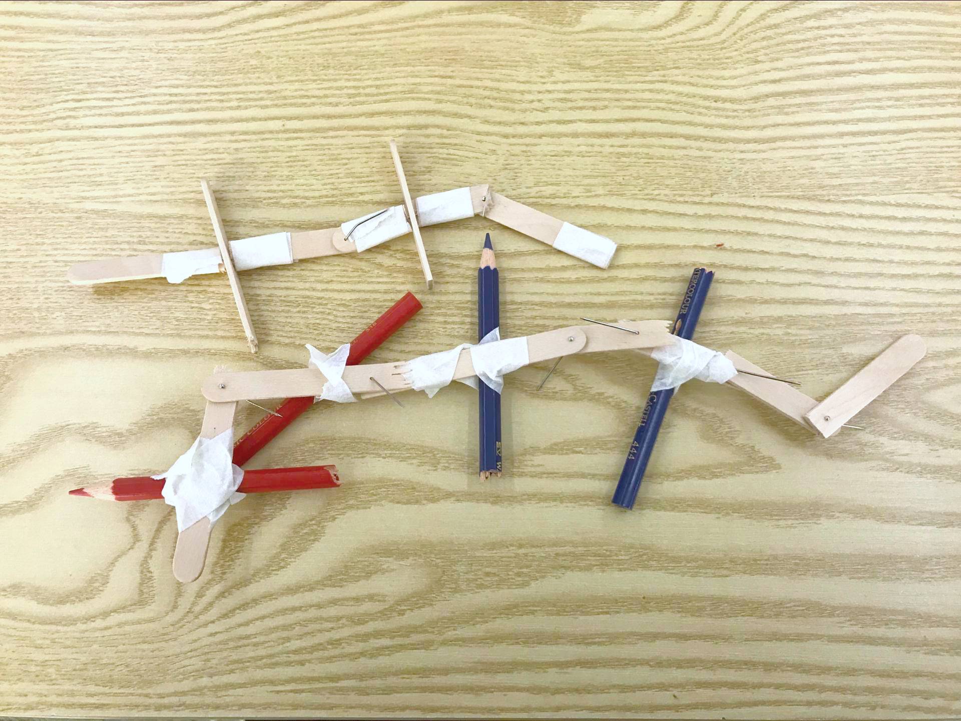 As we move into the creation phase, our team is divided into pairs, each conducting research. We use flexible wooden sticks for their adaptability, while also collecting data on how the sun and other environmental factors affect our project over time.