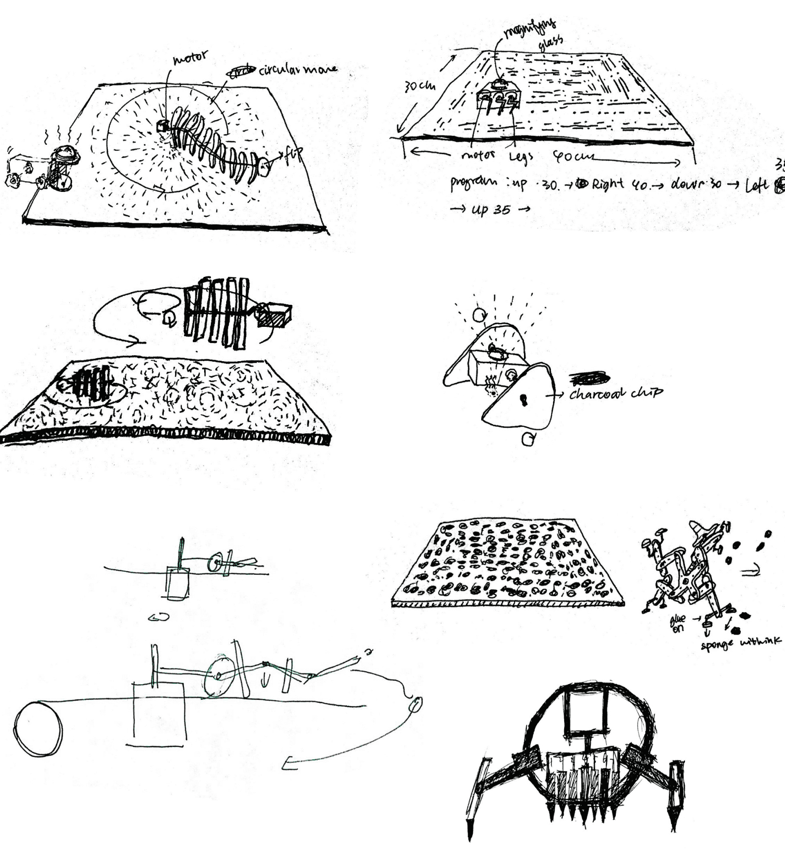 The first stage of our creative process was to generate ideas for devices that could transmit messages from the sun.